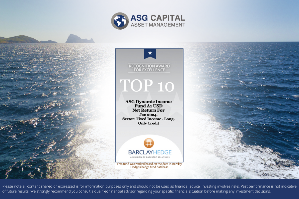 We are pleased to announce that ASG Capital has been featured in BarclayHedge’s Monthly performance rankings. ASG Dynamic Income Fund (share class A1 USD) has ranked number 10 in the Fixed Income – Long-Only Credit category for January 2024.